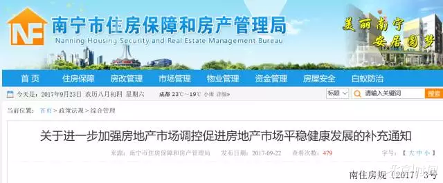 根據(jù)南寧市房管局發(fā)布的《關(guān)于進(jìn)一步加強房地產(chǎn)市場調(diào)控促進(jìn)房地產(chǎn)市場平穩(wěn)健康發(fā)展的補充通知》,自9月22日起: