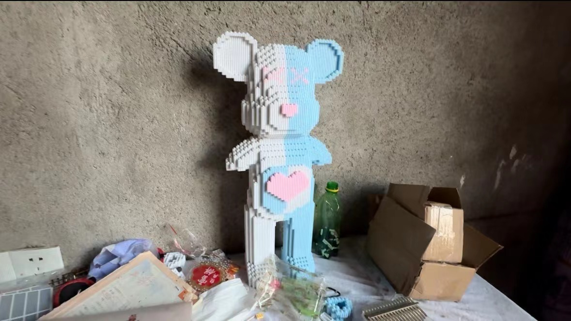 那件大碼衣服還疊放在夏悅的房間里,旁邊擺著一張簡易的折疊桌和一個塑料凳子。墻面還是一層水泥,只有床頭一角被房間的主人布置過,一張長條的桌上,鋪上了白色的桌布,桌上擺了一個巨大的玩偶和幾支畫筆——她喜歡畫畫,去描摹那些可愛的卡通人物。